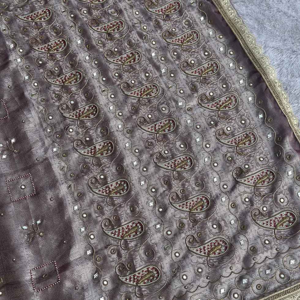 Paired with a finely woven Banarasi brocade blouse fabric, this saree completes a look that is both graceful and sophisticated. Designed for women who appreciate classic craftsmanship with a modern sensibility, it offers a perfect blend of tradition, comfort, and timeless allure.
